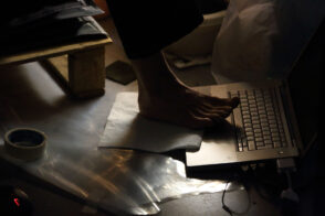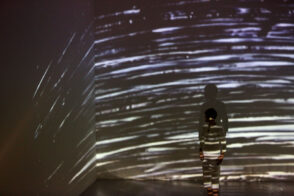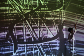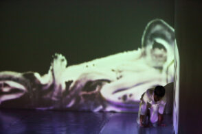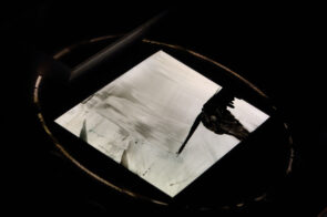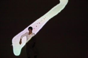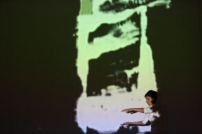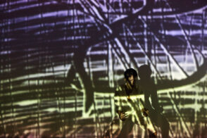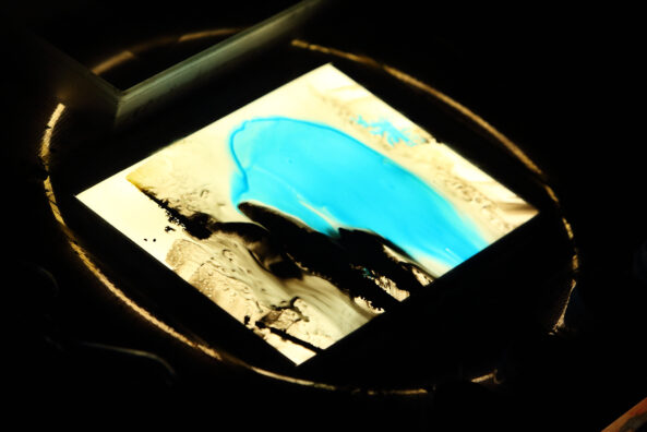 Trag /Trace /Spur is an experimental multimedia performance which combines live dance movement, animated painting on glass, and sound. Three artists and three media meet in a performing space that is constantly redefined by projections, shadows, sound and movement. Dance, sound and visual material are mutually driving each other; a new language is born, as well as new meaning, from causality and interaction. Each performance develops from the previous one while serving as a starting point for the next. All three artists process the sensory input from the other performers through their own medium, thus creating inspirations for their collaborators. At the same time, they create a universe that leaves the audience free to explore the combination of movement, live visuals and sounds according to their own personal experience.